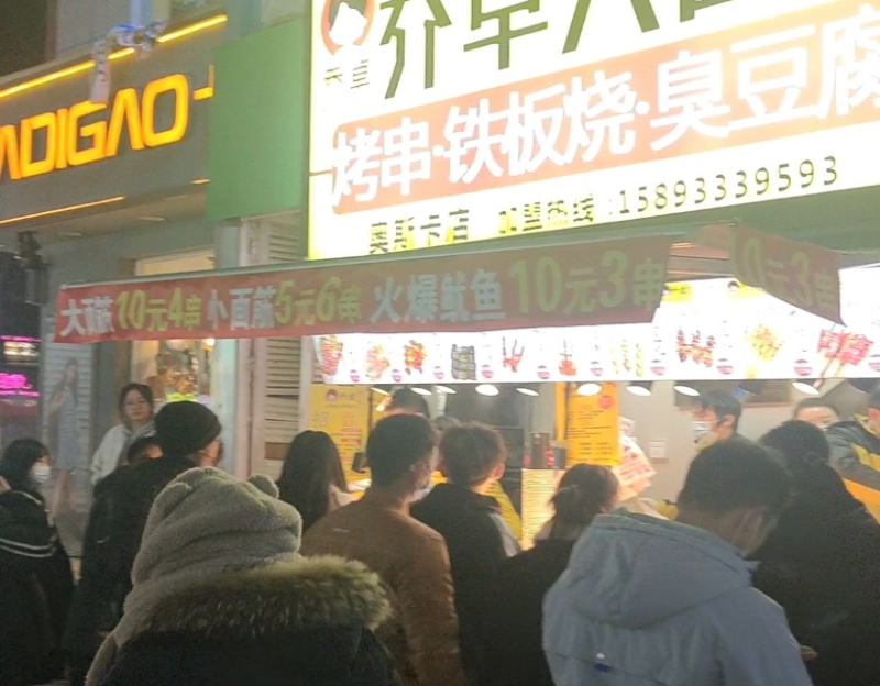 以擺攤形式在唐河奧斯卡電影院售賣喬記大面筋