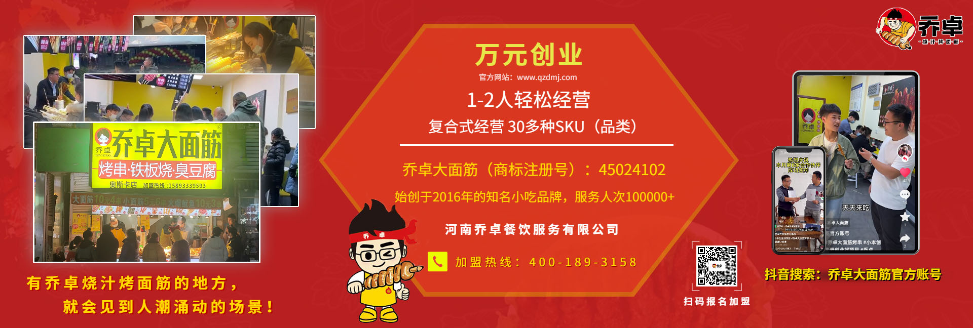 品牌正式升級為喬卓燒汁烤面筋,五店以全新形象開業(yè),加盟店數(shù)量不斷增加,期待有夢的你加入