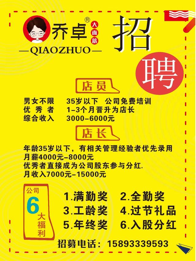 4月15日消息,河南知名小吃品牌之一的喬卓大面筋,于近日發(fā)布招聘信息,高薪誠(chéng)聘英才,優(yōu)秀者更有機(jī)會(huì)直接成為公司股東參與分紅,歡迎有志者加入到喬卓餐飲的團(tuán)隊(duì)里,一展才華,同創(chuàng)輝煌。